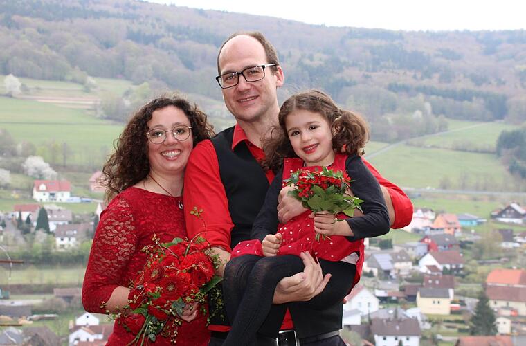 Es ist eine ungewöhnliche Trauung, die Bürgermeister Roland Römmelt am Ostermontag hinauf zum Kapellchen führt. Ungewöhnlich deshalb, weil die Brautleute fast allein gekommen sind. Nur die Trauzeugen sind in diesen Zeiten erlaubt. Ungewöhnlich ist auch, dass das Paar in Rot gekleidet auftaucht - ihr gemeinsames Markenzeichen. Auch Ninas Tochter Lenya trägt rot. Ihr steht die Aufregung über diesen besonderen Anlass ins Gesicht geschrieben.