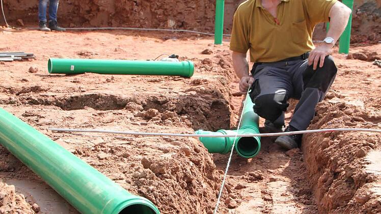 Die Fallplatte rauscht nach unten. Dumpf schlägt sie auf. "34,62", sagt Alexander Weber, "ich würde sagen, das ist ok". Klaus Rimpel nickt. 30 Zentimeter Schotter, 20 Zentimeter Filterkies, zehn Zentimeter Sauberkeitsschicht - dann erst wird die Bodenplatte für die Tiefgarage gegossen. Da muss der Boden drunter halten. Rimpel und Weber machen die Verdichtungskontrolle, damit später, wenn das neue Haus Waldenfels steht, nichts ins Rutschen gerät.
