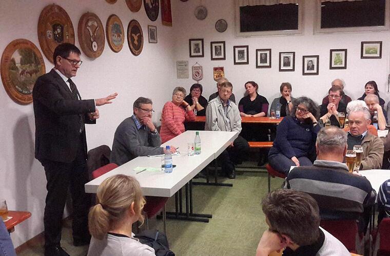 Mit dem Integrations-Beauf-tragten des Landratsamtes, Stefan Seufert, war ein absoluter Fachmann in Sachen Flüchtlinge und Asyl als Referent in die Rhön gekommen.