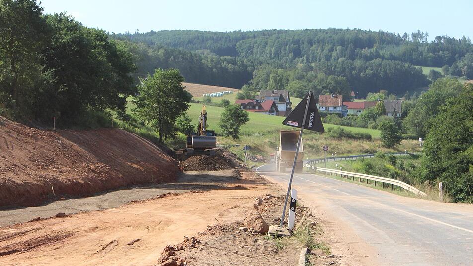 In dieser Hanglage keine ganz einfache Aufgabe, denn viele Kubikmeter Boden müssen dafür versetzt werden. "Insgesamt bewegen die Bauarbeiter 27 000 Kubikmeter Erde auf der gesamten Baustelle", fasst der Abteilungsleiter zusammen. Die Baumaßnahme diene aber nicht nur der Ertüchtigung der Staatsstraße, die in einem "sehr schlechten Zustand war", kommentiert Michael Fuchs, Behördenleiter des Staatlichen Bauamtes Schweinfurt. Die Unfallsicherheit stehe an höchster Stelle.