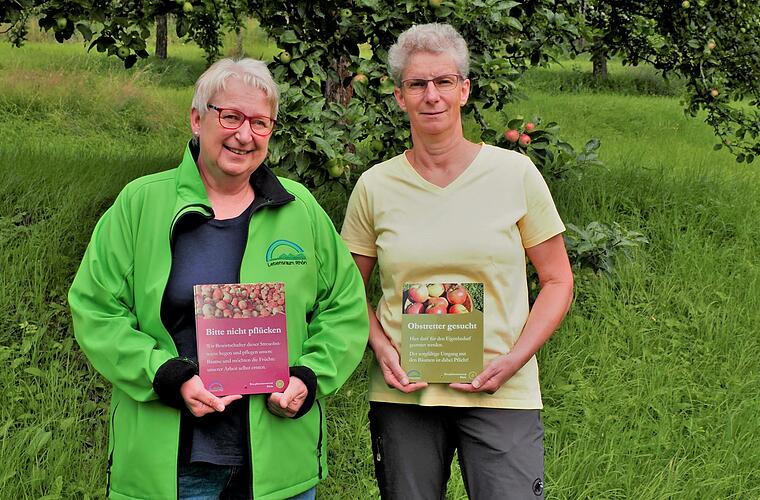 Damit Interessierte erkennen können, ob Bäume zum Bedienen freigegeben sind, hat der Verein Natur- und Lebensraum Rhön zwei Schilder herausgebracht. Den Anstoß hat Astrid Schäfer gegeben, die selbst eine große Streuobstwiese bewirtschaftet.
