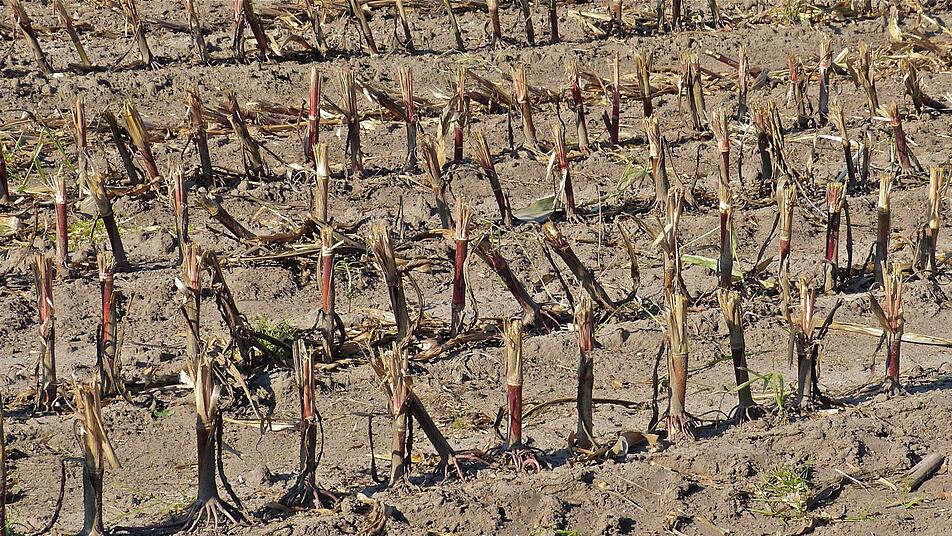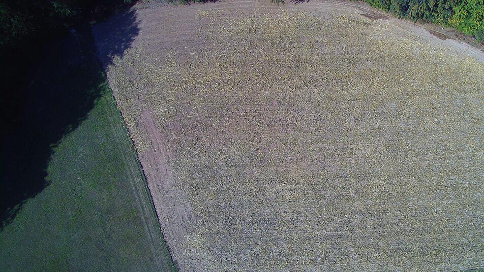 Sie machen ernste Gesichter. Die Landwirte Jürgen Förg aus Einraffshof und Harald Romeis aus Unterleichtersbach stehen an einem Feld, auf dem Reste von Maispflanzen unordentlich am Boden liegen. Der ungeübte Beobachter könnte es im Vorbeifahren für einen abgeernteten Acker halten. Förg und Romeis aber wissen: Hier ist nicht viel Ernte übrig geblieben. Wildschweine haben die Kolben gefressen und die Pflanzen auf den Boden gedrückt.