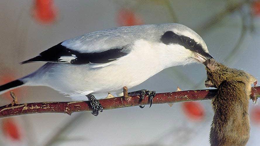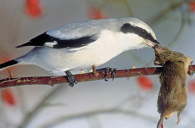 Seine Beute spießt der Raubwürger anschließend in Hecken und Büschen auf spitze Äste, um sie bei Gelegenheit zu verspeisen. Er besitzt große Reviere und hat gerne Nachbarn. "Wenn eine Population ausgestorben ist, ist es eher schwierig, dass wieder eine entsteht", meint der Biologe. Deshalb sei es wichtig, den Lebensraum zu erhalten und erweitern. Die intensive Landwirtschaft und Verbuschung widerspreche dem Lebensraum des Vogels.