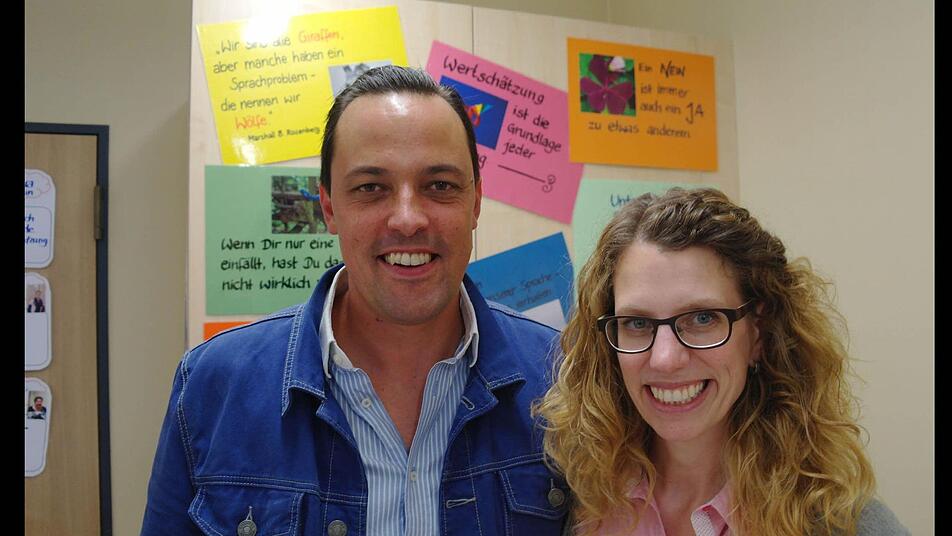Doch muss man noch nicht mal im Pflegebereich arbeiten, um sich an Situationen zu erinnern, in denen man aneinander vorbeigeredet hat oder sich die Lage verschärfte. Dem vorzubeugen, hat das Pflegeheim Römershag Petra Gloxin und Philippe Pereira vom Krankenhaus Schloss Werneck als Referenten geladen, die das Thema der "Gewaltfreien Kommunikation" (GFK) vorstellten.