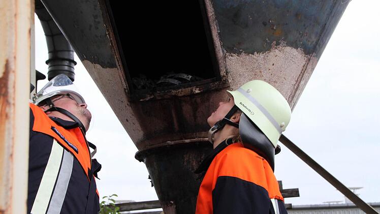 Silo war mit Hackschnitzeln befüllt Der Notruf, den ein Mitarbeiter des Unternehmens absetzte, erreichte gegen 11.45 Uhr die Integrierte Leitstelle in Schweinfurt. Sofort machten sich die Feuerwehren aus Ober- und Unterleichtersbach, Bad Brückenau, Modlos und Breitenbach auf den Weg. Rund 60 Kameraden, darunter zwei Frauen, waren im Einsatz. "Nach 20 Minuten hatten wir den Brand unter Kontrolle", schilderte Andreas Seidenthal, 2. Kommandant der Feuerwehr Oberleichtersbach, der den Einsatz leitete. Eine Drehleiter wurde aus Hammelburg geordert, weil die Brückenauer Drehleiter in Reparatur ist.