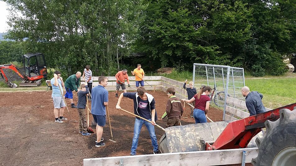 Der 2. Feuerwehr-Kommandant Michael Hornung dankte dem Bürgermeister von Schondra, Bernold Martin, für die Unterstützung. Die Marktgemeinde stellte Bagger für den Erdaushub und das Material für die Banden zur Verfügung. Der Umbau wurde durch die Eigenleistung der Singenrainer bewerkstelligt, wofür Martin ein großes Lob aussprach: "Die Arbeiten waren nicht leicht. Der komplette Untergrund besteht aus Steinen, welche erst mal abgetragen werden mussten."