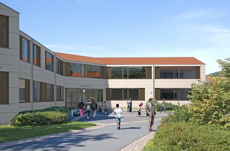 Die Fassade der Mittelschule gefiel den Räten auf Anhieb. Einstimmig winkten sie das Konzept, das sich auf beige, hellgrüne Farben und ein dunkleres Grün stützt, durch. Nur schweren Herzens hatte der Stadtrat während der Planungsphase eingesehen, dass der regionale Schiefer, der bisher vor der Witterung schützte, nicht zu erhalten war. Zu groß sind die baulichen Eingriffe während der Generalsanierung.