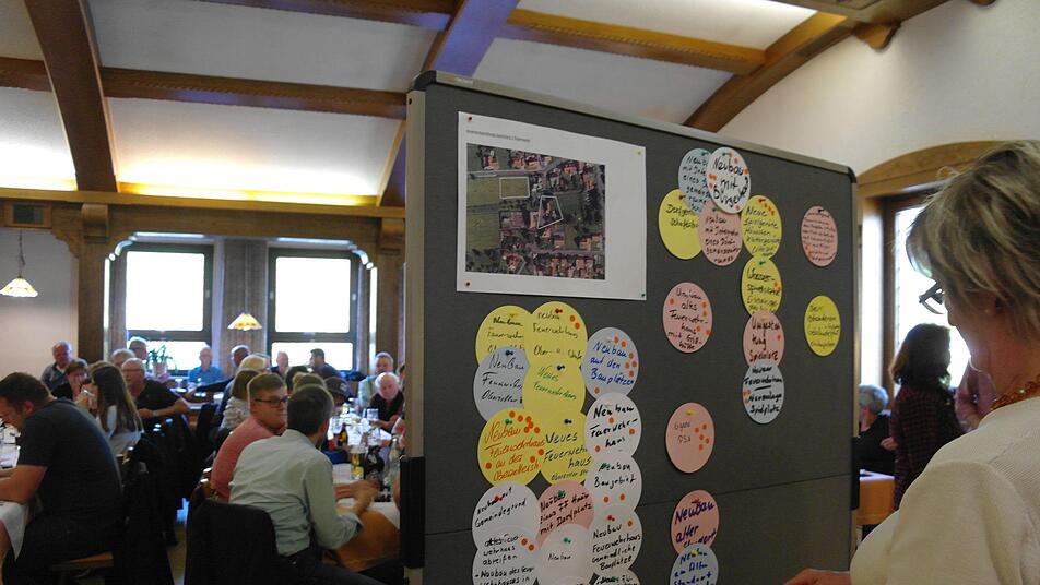 Bei dieser und der Ideensammlung der Erwachsenen, die im Anschluss folgte, galt die wichtigste Regel: "Es gibt keine blöden Ideen", es sollte auch keine Diskussion um die Ideen geben. "Sie sagen: Ich möchte...", betonte Hans Rohrmüller. Die Ideen sollten lediglich neutral durch Aufkleben von Punkten bewertet werden. "Interessant ist", so berichtete Rohrmüller von der Bürgerversammlung zur Dorfentwicklung in Kothen, die bereits Anfang April stattgefunden hatte, "dass bestimmte Ideen immer wieder kommen und die Ideen von Jugendlichen und Erwachsenen nahezu gleich sind".