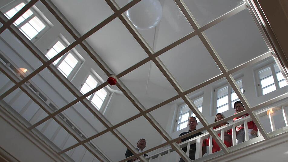Natalja Lepichin schuf mit einer großen Kugel direkt unter dem Dach einen echten Blickfang. Durch eine Glaswand fällt das Licht bis hinunter ins Foyer. Dort hängt übrigens auch ein Kronleuchter, der - genauso wie die Lüster in den Zimmern - bewusst an die Gestaltung des König Ludwig I.-Saales anknüpft. Es sind solche kleinen Akzente, die die Einheit des gesamten Ensembles prägen.