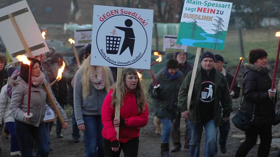 Rund 250 Menschen haben am Sonntagabend im Brückenauer Ortsteil Römershag gegen die geplante Stromtrasse Südlink demonstriert. Aufgerufen zu dieser Kundgebung hatte die Bürgerinitiative (BI) "Sinntal gegen die Stromtrasse". Nach einer Fackelwanderung durch Römershag wurde symbolisch ein hölzerner Hochspannungsmast in Flammen gesetzt. "Die Rhön ist ein Tabu für solche Trassen. Die Rhön ist nur ohne Trasse schön. Trasse und A 7 - nicht alles auf uns schieben. In Berlin da spitzt das Ohr, wir brauchen keinen Korridor", skandierten die Demonstranten.