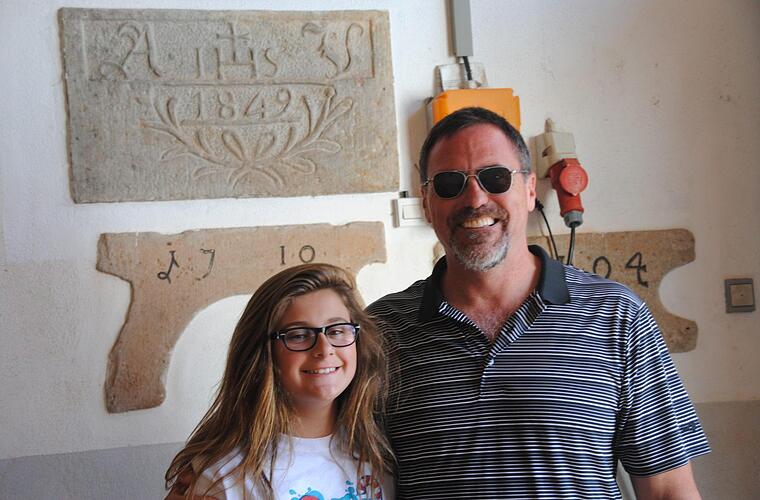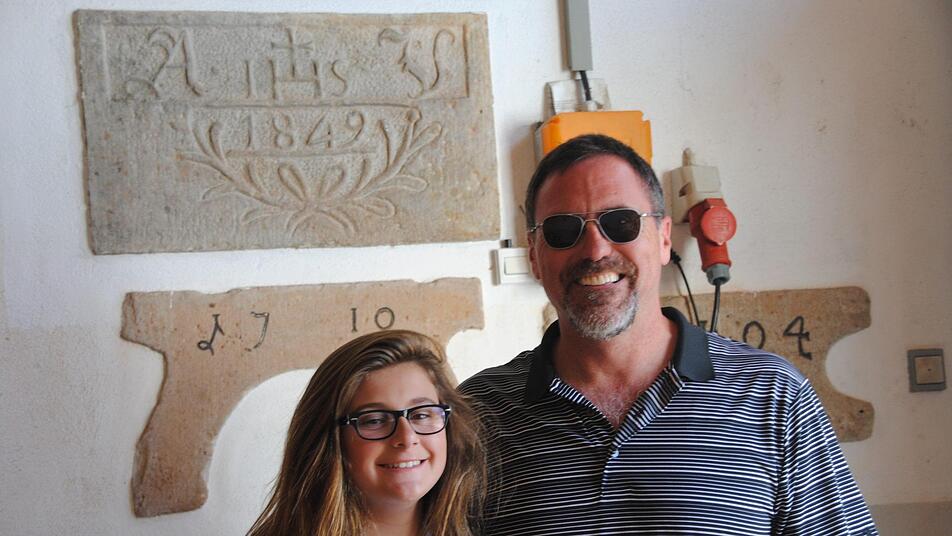 "Das sind fünf Generationen. Die Tochter Jadyn kann somit belegen, diesen Stein hat mein UrUrUrGroßvater gefertigt", freute sich Anton Enders, den Gästen aus Amerika ein Stück ihrer Geschichte gezeigt zu haben. "So ein Erinnerungsfoto kann sicherlich nicht jeder vorweisen." Dass der Stein erhalten blieb, sei auch der Weitsicht der heutigen Eigentümer des "Hense-Hauses", speziell dem mittlerweile verstorbenen Hans Vorndran zu verdanken sowie dessen Liebe zum Sandstein, der Geschichte und Tradition.