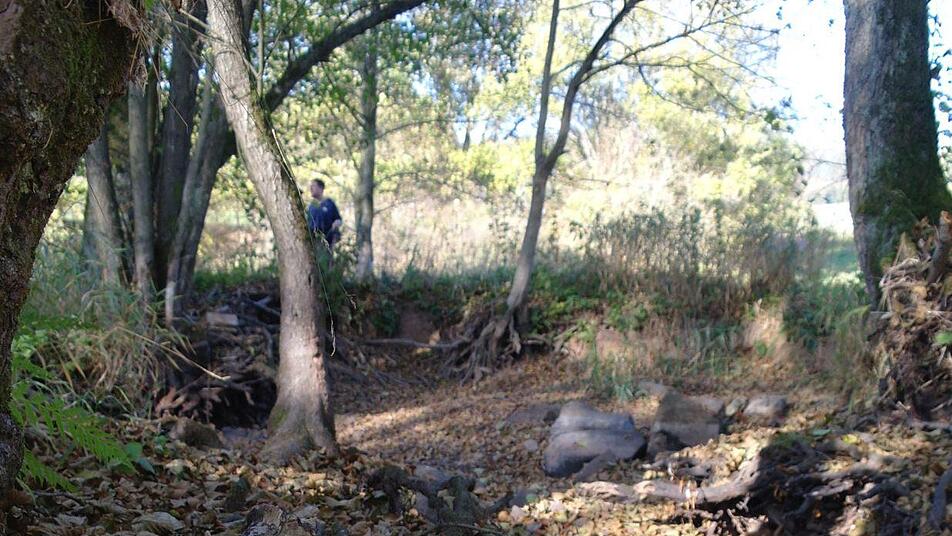 Wenn nun die Quellen der Sinn weiterhin sprudeln, wenn auch nicht so ergiebig wie üblich, und die Biberdämme das Wasser nur kurzfristig aufhalten, wo ist das Wasser geblieben? Auch mehrere alte Mühlgräben entnehmen Wasser, führen es dem Bach aber wieder zu. "Fließgewässer stehen im Austausch mit dem Boden und dem Grundwasser", erklärt Mußhoff. So könnte Wasser versickert, abhängig von den Lufttemperaturen auch verdunstet sein.