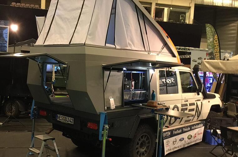 Nicht nur einen Aufbau, sondern gleich drei haben die beiden Tüftler erstellt. Der Clou des Ganzen: die Aufbauten können miteinander kombiniert werden und passen auf jeden beliebigen Geländewagen. Wie sie das gemacht haben, das wird nicht verraten. "Das ist Betriebsgeheimnis", schmunzelte Krenzer. "Für uns war es wichtig, dass es praktikabel, funktional und komplett flexibel ist."