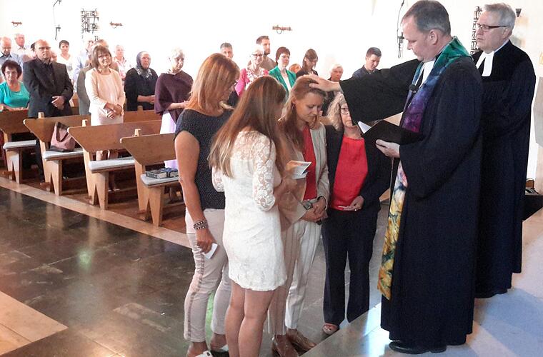 Zur eigentlichen Zeremonie von Maja Kirchners Beauftragung versammelten sich neben deren Vater Gerd und dem evangelischen Dekan auch die Patinnen der neuen Prädikantin vor dem Altar der Friedenskirche. Alle versprachen der 29-Jährigen die volle Unterstützung bei der Bewältigung der künftigen Aufgaben.