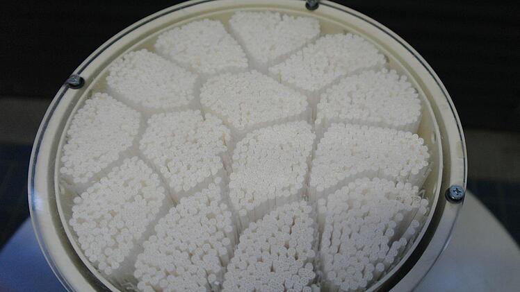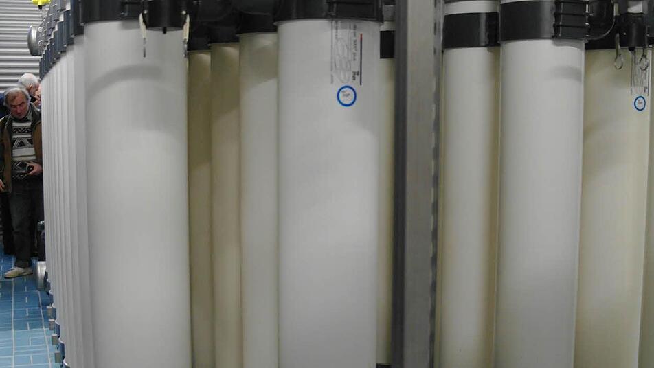 Die erste Station des Rohwassers ist die Ultrafiltrationsanlage. Durch 44 Röhren wird das Wasser gepumpt, jede enthält Leitungen mit winzigen Löchern. Sogar Bakterien bleiben darin hängen. Nach Passieren dieser Anlage ist das Wasser eigentlich schon sauber, betont Geschäftsführer Schneider. Die gesamte Aufbereitung erfolgt vollautomatisch, nur ein Bereitschaftsdienst sei im Notfall zur Stelle.