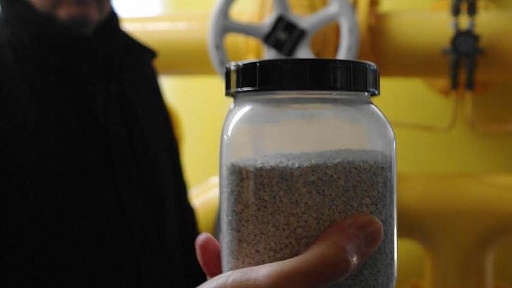 Verunreinigungen ausgeschaltet Das Wasser, das in unserer Gegend Sandstein durchdringt, ist relativ sauer. Im nächsten Schritt wird es mit Hilfe von halbgebranntem Dolomit entsäuert. Gleichzeitig wird der ph-Wert von 6,7 auf 7,8 angehoben. Dafür werden jährlich 24 Tonnen des Kalks benötigt.