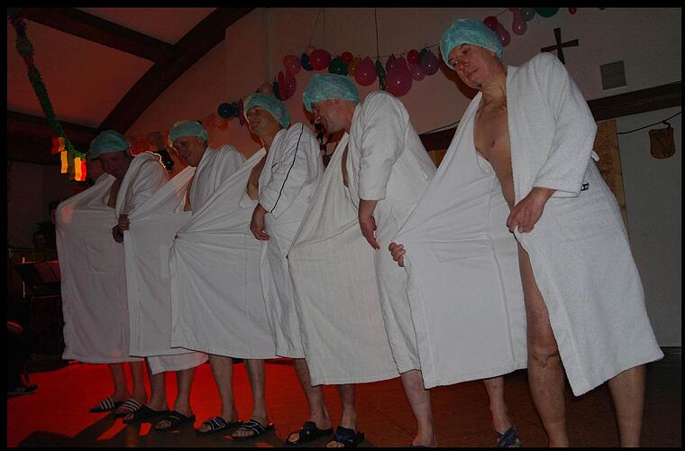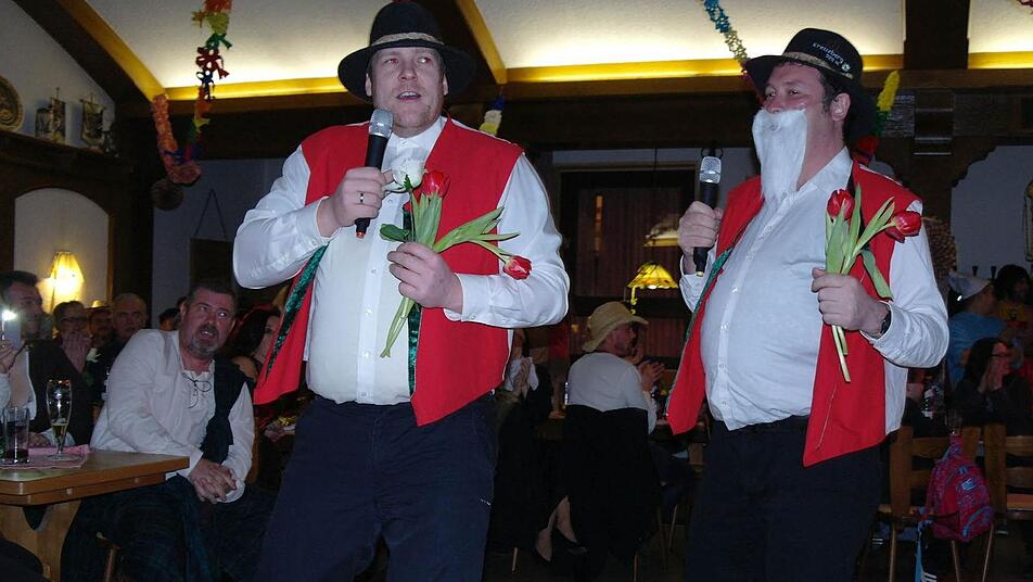 Das Männerballett (Siggi und Richard Heurich, Mario Mathes, Norbert Müller, Udo Schmitt, Alfons Hohmann), das bereits beim letzten Büttenabend die nicht nur weiblichen Zuschauer begeistert hatte, zeigte nun viel nackte Haut, eine kleine Überraschung und eine große Portion Humor. Als Zuschauerlieblinge gingen die "Wildfleckener Herzbuben" (Mario Matthes und Tobias Leitsch) durch die Zuschauerreihen. Für die musikalische Begleitung und Schunkellaune sorgte Jürgen "Juxie aus der Rhön".