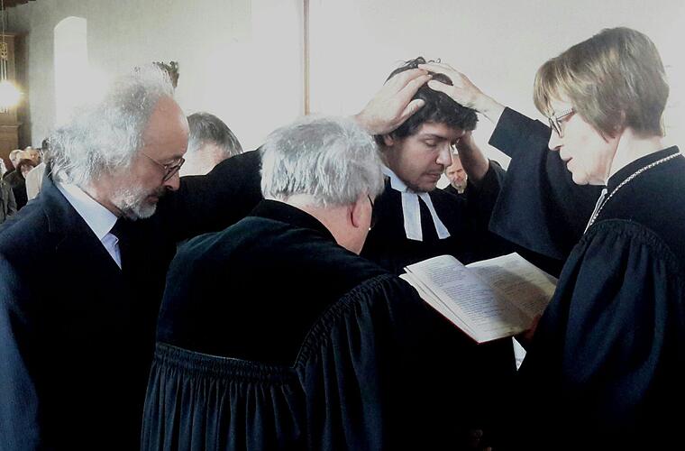 "Ich möchte keinen anderen Beruf haben", so das Fazit der Oberkirchenrätin, die vor nunmehr fast 30 Jahren ordiniert worden ist. Das Vertrauen und das Wagnis, Jesus zu folgen und im Dienst der Kirche zu stehen, hätten sich trotz aller Anstrengungen, "die oft bis an die Belastungsgrenze gegangen sind", gelohnt. Diese Erkenntnis schrieb sie ihrem neuen Pfarrerkollegen vor dem Übergang zur feierlichen Ordination ins Stammbuch.