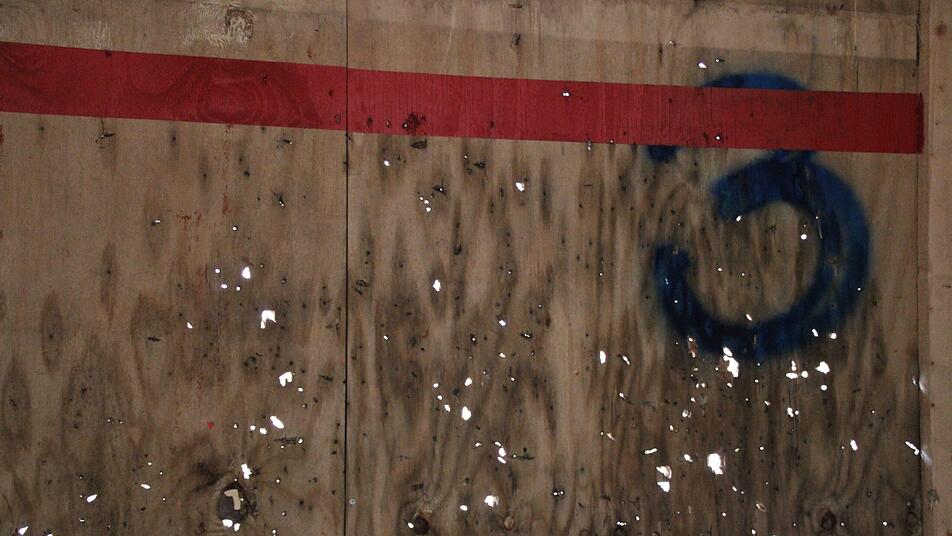 Es ist ein Krater, in dem das unscheinbare Gebäude errichtet wurde. Erdwälle schützen das Haus von allen Seiten. Innen reihen sich Räume aneinander, die mit schlichten Bretterwänden abgeteilt worden sind. Überall sind Einschusslöcher zu sehen. Schießbahn 11 liegt im nördlichen Teil des Truppenübungsplatzes Wildflecken, unmittelbar an der hessischen Grenze. Hier trainieren Spezialkräfte Taktik und Schuss in einem Gebäude.