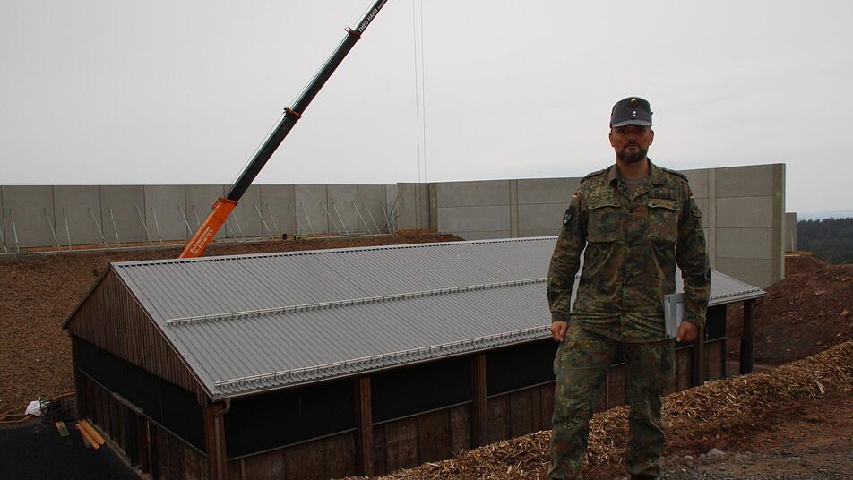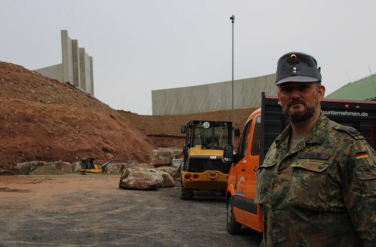 Oberstleutnant Kai Schulze hat den Truppenübungsplatz unter sich. Die Schießbahn habe nicht mehr den Sicherheitsbestimmungen entsprochen, erklärt der Kommandant. Deshalb werden die Wälle nun erhöht und zusätzlich mit einer Wand versehen. Denn es könne leicht passieren, dass ein Schuss, der im Gebäude abgefeuert werde, aus Versehen ins Umland gehe.