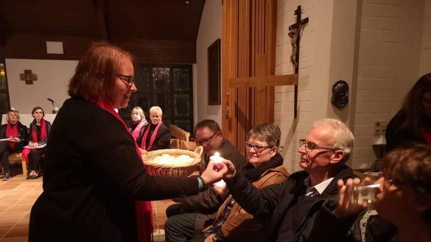 Doch dann veränderte sich die Atmosphäre. Die ökumenische Singgruppe "Jubilate" und die Gäste hatten gerade noch voller Fröhlichkeit "Eingeladen zum Fest des Glaubens" gesungen, da sang der Chor "Dann ging er hin zu sterben." Aus dem Lukasevangelium wurde von Jesus Todesangst vorgelesen und den Jüngern, die statt zu beten und mit ihm zu wachen eingeschlafen waren.
