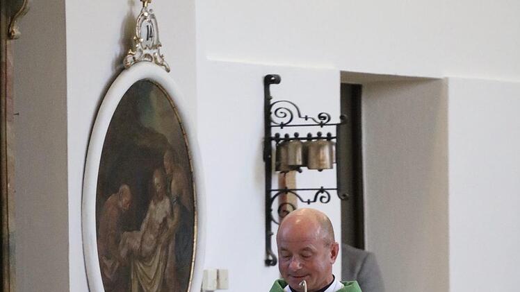 Pfarrer Mariusz Dolny wurde am Sonntag in der voll besetzten Oberbacher Kirche Mariä Himmelfahrt als neuer Leiter der katholischen Pfarreiengemeinschaft Oberer Sinngrund offiziell eingeführt. Die Pfarreiengemeinschaft umfasst die vier Orte Riedenberg, Oberbach, Wildflecken und Oberwildflecken. Der 54-jährige Pfarrer bekam von Dekan Armin Haas symbolisch den Kirchenschlüssel überreicht. Dolny griff die Schlüsselübergabe in seiner Predigt immer wieder auf. "Dass ich auch einen Schlüssel zu den Herzen der Menschen finde, das ist in der Tat heute mein Wunsch, aber auch auch ein bisschen meine Sorge", sagte Mariusz Dolny. Denn noch wisse man nicht, ob es gelingen kann, einen Zugang zu den Herzen aller Menschen in Wildflecken, Oberwildflecken, Oberbach und Riedenberg zu finden. Die Erwartungen der Gläubigen an einen neuen Pfarrer seien sehr unterschiedlich. "Kein Mensch kann den Erwartungen aller anderen Menschen in gleicher Weise gerecht werden. Natürlich hoffe ich, dass ich bei den Menschen gut ankomme. Und ich wünsche mir, dass mich die Menschen im Oberen Sinngrund als ihren neuen Pfarrer annehmen. Mit all meinen Ecken und Kanten."