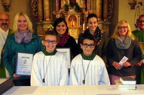 Pfarrer und Diakon bedauerten, dass diese aus schulischen und beruflichen Gründen nicht mehr am Regeldienst als Ministrant teilnehmen können. Sie werden auch Diakon Löw, den sie mit ihrem Ministrantendienst unterstützt haben, fehlen. Pfarrer Judmann hofft allerdings darauf, dass sie auch weiterhin, insbesondere bei Hochfesten während des Kirchenjahres die Ministrantenarbeit unterstützen werden. Gutscheine gab es für besonders engagierten Dienst. Johanna Müller hat bei der Anzahl der gedienten Gottesdienste den ersten Platz, Tabea Kolb den zweiten und Katharina Müller und Marlon Benkert beide den dritten Platz belegt.