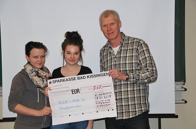 565 Euro sammelten die Wildfleckener Schüler für Straßenkinder in Brasilien. Die beiden Schülersprecherinnen der Grund- und Mittelschule Wildflecken, Helena Hawener und Theresa Müller, überreichten nun Lehrer Andreas Dylla einen Scheck in Höhe dieser Summe für das Projekt "RUA - Hilfe für Straßenkinder".