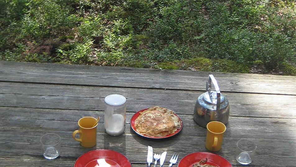 Noch schöner aber ist die Geschichte vom Seegeist. Einmal im Jahr bringt die Oma ihm einen Schluck Saft. "In den letzten Jahren hat sie ihm Bier gebracht, ganz sicher!", behauptet Sini felsenfest. Die Frau, die damals ihrer Brieffreundschaft nach München folgte, hat ihren Enkeln den Ort ihrer Kindheit lieben gelehrt. Dann kehrt die Familie gedanklich zurück nach Deutschland. Nach Bad Brückenau. In die Küche. Der Auflauf ist fertig.