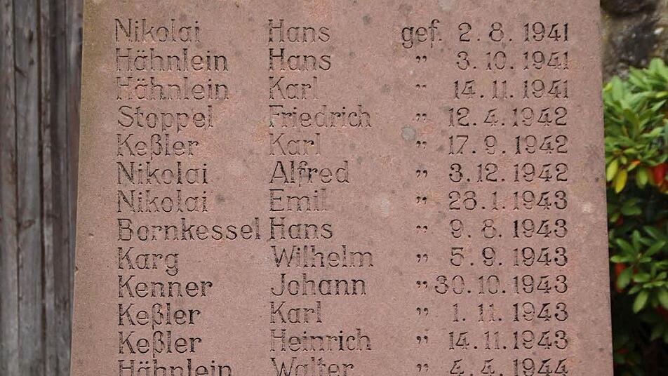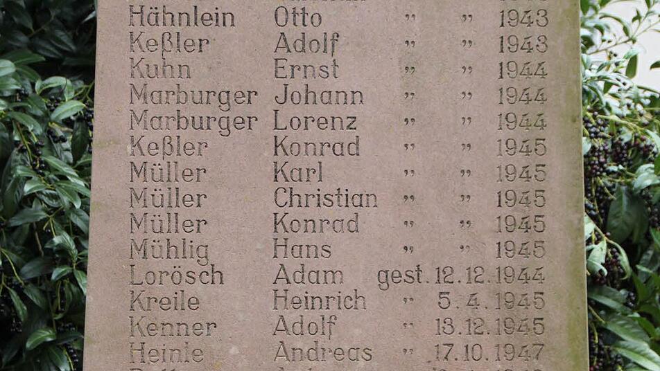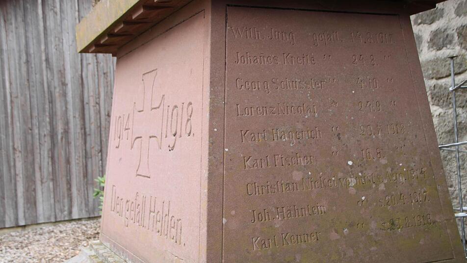 Denn als der Krieg zu Ende ist, feiert die Gemeinde wieder einen Gottesdienst. "Nicht der Glaube sei in diesem Kriege bankrott geworden", sagt der Pfarrer in seiner Predigt, "vielmehr sei dieser in Kampf und Not und Trauer der einzige Halt gewesen." Und dann wird für die Gedenktafel gesammelt. Hauptlehrer Kern nimmt nicht am Gottesdienst teil, bedauert Pfarrer Woeckel. Er verlor im Frühjahr 1918 seinen Sohn "durch den Heldentod". Auch sein Name steht auf der Tafel.
