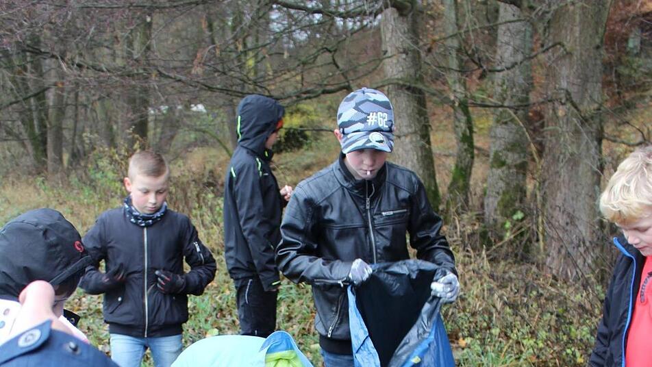 Ein eisiger Wind weht über die Schachblumenwiese in Zeitlofs. Trotz der Kälte sind an diesem Morgen 14 Schüler der Grundschule Zeitlofs unterwegs, um für ein bundesweites Projekt Forschung zu betreiben. Auch hier - an diesem idyllischen Ort - werden sie fündig. Sie suchen und dokumentieren Müll in allen Formen.