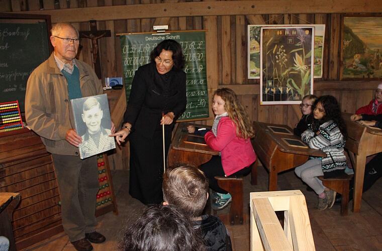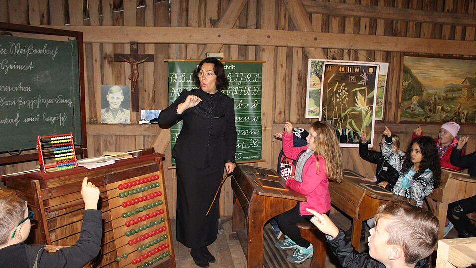 Im historischen Klassenzimmer des Chrisam-Hofs in Weißenbach herrschte an diesem Morgen Disziplin und Ordnung. Neben Finger- und Haltungskontrolle führt die Lehrerin die gemischten Klassenstufen durch den sogenannten frontalen Anschauungsunterricht. "Ohne Disziplin ging das damals nicht, denn große Klassen mit mehreren Jahrgangsstufen wurden parallel unterrichtet", erklärt Helfrich im Anschluss. Methodisch und didaktisch sei das eine große Herausforderung gewesen, sagt die Lehrerin.