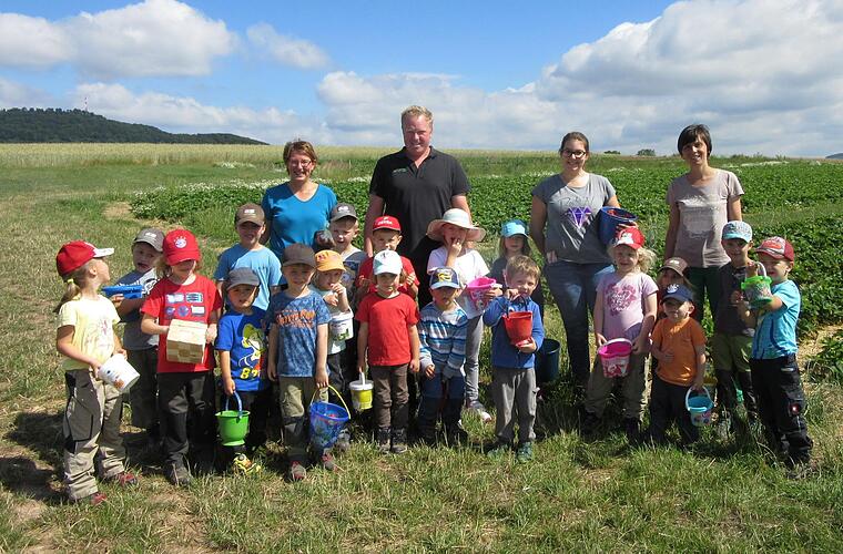 Es duftete über das ganze Feld, als die Waldkindergartengruppe das Erdbeerfest von Obsthof Müller besuchte.