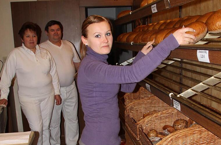 "Mama, ist der Stollen schon fertig?" Christina kommt in die Backstube. Sie hat bei ihrer Mutter eine Ausbildung zur Fachverkäuferin im Bereich Lebensmittel gemacht und steht - wenn sie nicht gerade in der Backstube aushilft - hinter der Kasse. Zwei weitere Verkäuferinnen und eine Aushilfe in der Backstube beschäftigt das Unternehmen. Der Kunde bekommt die Ware frisch, manchmal noch ofenwarm.