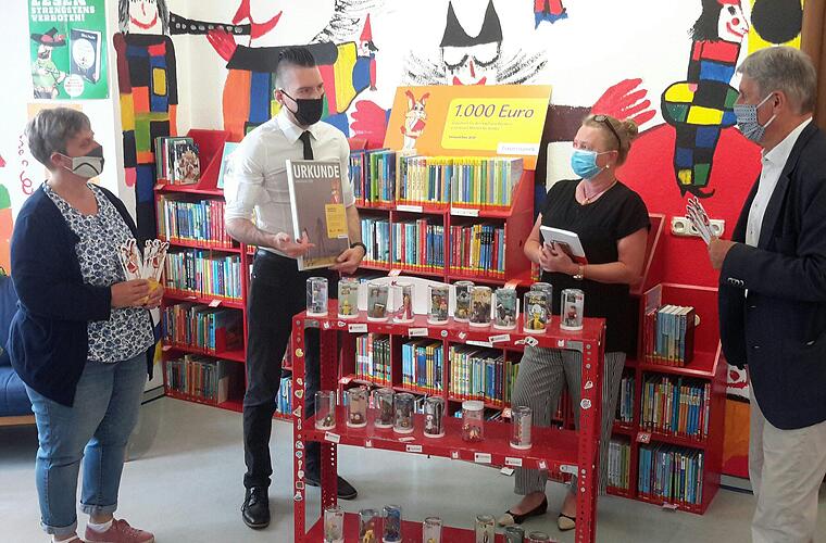 Christine Pfaff, Kommunalbetreuerin beim Bayernwerk, war nicht mit leeren Händen zur Preisverleihung an die Sinn gekommen. Neben der obligatorischen Urkunde hatte sie einen Scheck über 1000 Euro für Kulturbüroleiter Jan Marberg im Gepäck. Ihr Unternehmen unterstützt die Lesezeichen-Aktion in Kooperation mit der Landesfachstelle für das öffentliche Bibliothekswesen und dem Sankt Michaelsbund. Die Aktion gibt es seit 2007, diesmal stand sie unter dem Motto "(Spiel)Raum für Fantasie".