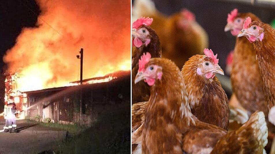 Ein Großaufgebot an Einsatzkräften rückte in Bad Kissingen aus, um einen Brand auf einem Hühnerhof zu löschen. Als sie eintrafen, drangen bereits offene Flammen aus dem Gebäude.