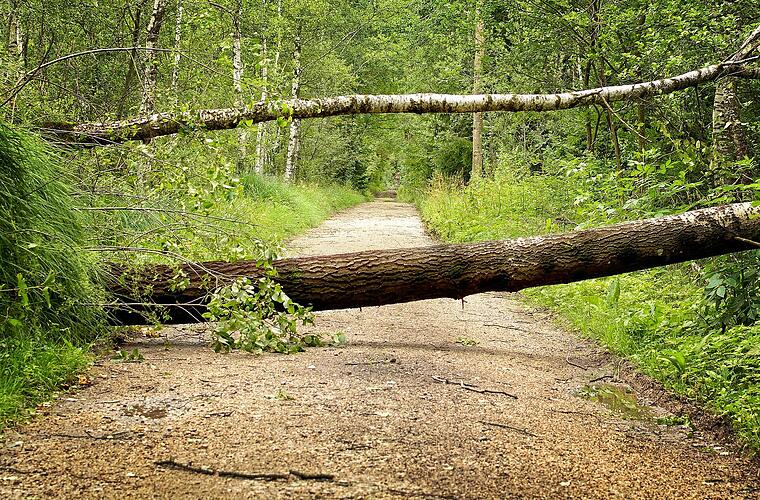 Die Gefahrstelle kann derzeit leider noch nicht geräumt werden, da der bachbegleitende Weg wegen Erosionsschäden nicht mit einem Hubsteiger befahrbar ist. Vor der Beseitigung der Gefahrenstelle muss erst der Weg gerichtet werden. Dies wird voraussichtlich im September erfolgen. Der komplette Weg wäre damit dann ab Mitte Oktober wieder nutzbar.