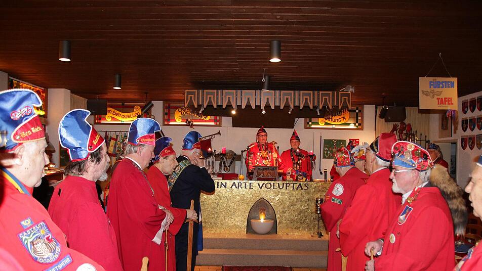 Das Bier heißt "Quell", der Wein "Lethe", sie schreiben das Jahr 160 "anno Uhui" und rufen "Lulu", wenn ihnen etwas gefällt: Der weltweite Männerbund Schlaraffia hat viele kuriose Bräuche. 261 so genannte Reyche gibt es weltweit, in allen wird Deutsch gesprochen, Zutritt haben  nur Männer. Im Oktober 1955 wurde das Bad Kissinger Reych "An den Quellen" gegründet, Nummer  330 von 429 jemals vergebenen. Von Oktober bis April, der "Winterung", kommen die Schlaraffen jeden Dienstag in ihrer Burg zu einer Mischung aus mittelalterlichem Spiel und  Gesangsabend und huldigen dem Humor.