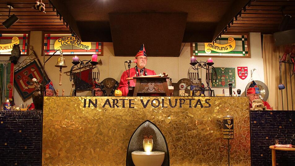 Gegründet wurde die Schlaraffia 1859 in Prag, von Künstlern und als Gegen-Bewegung zu strengen Verbindungen. In Bad Kissingen gab es in den 1920er Jahren die ersten Versuche, ein Reych zu gründen, ein Berliner Arzt übernahm die Initiative. "Wir sind kein Geheimbund", stellt Lotter klar. Von Querulanten, die als "Reichsbürger" die Bundesrepublik leugnen, distanziert er sich strikt: "Schlaraffe ist man für diesen Abend." Für die profane Welt hat die Schlaraffia einen eingetragenen Verein gegründet, dem auch die "Burg" gehört: In dem unscheinbaren Gebäude zwischen Salinen- und Friedrich-List-Straße sind neben dem Rittersaal auch zwei Wohnungen.