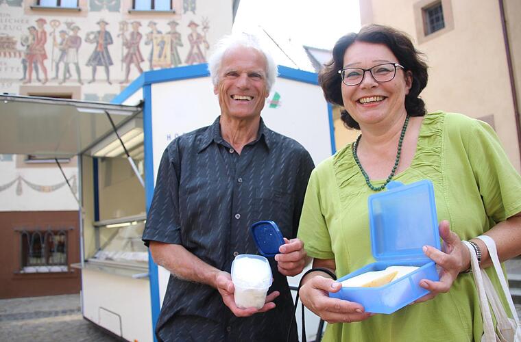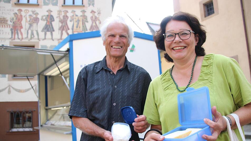 Richard Fix und Jutta Wittmann bringen Dosen für Wurst und Käse mit. Sie starteten eine Umfrage, wo sie in Kissingen verpackungsfrei einkaufen können.
