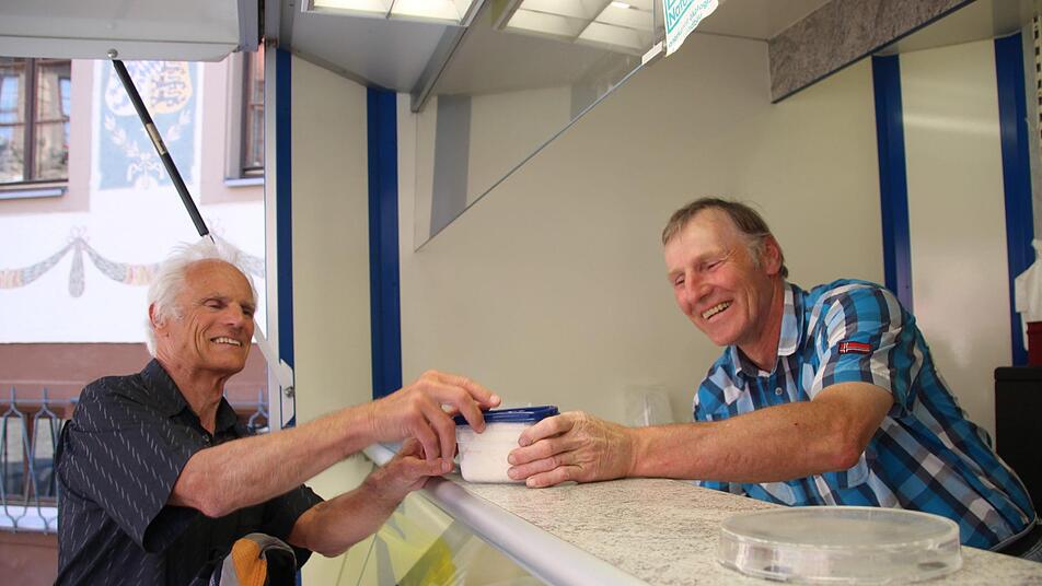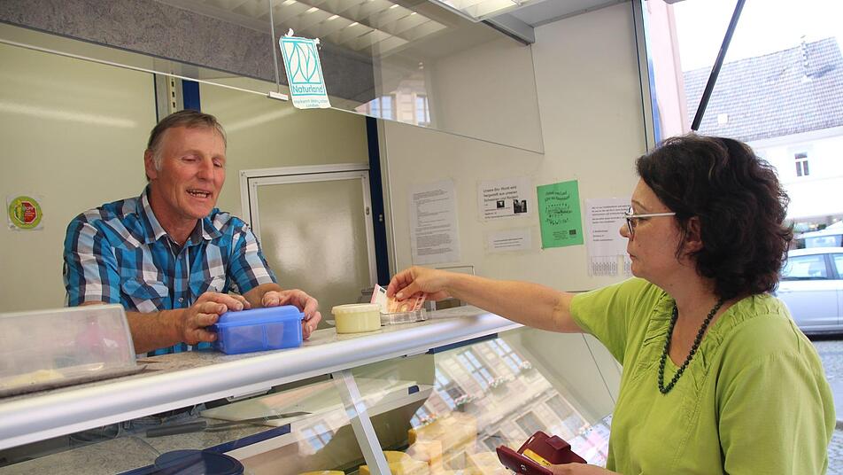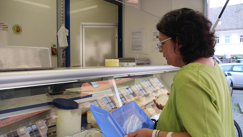 Für Direktvermarkter Michael Zeitz aus Wartmannsroth ist der verpackungsfreie Verkauf inzwischen schon Standard. Viele Kunden, die sich am Marktwagen seiner Hofkäserei mit Quark und Käse eindecken, bringen ihre eigenen Behälter mit. "Für mich ist das nicht umständlicher", sagt er. Er müsse nur darauf achten, das Tara an der Waage mit jedem Gefäß neu einzustellen, damit er die Ware korrekt abwiegt und abrechnet. Zeitz deutet auf einen Karton mit Plastikschälchen und Deckeln. "Davon brauche heute ich weniger als früher", berichtet er.