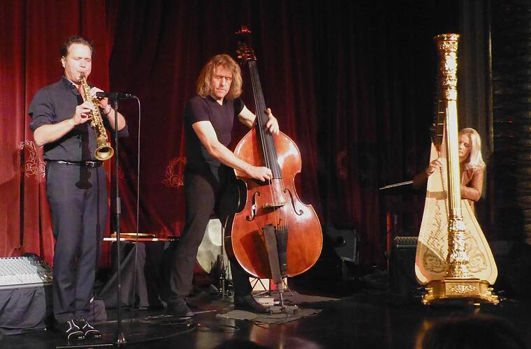 Und Evelyn Huber verwendete auch mal ihre Harfe als Percussioninstrument oder gebrauchte das Hackbrett für ganz raue Effekte.