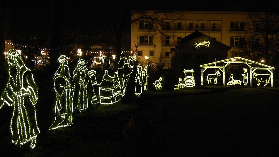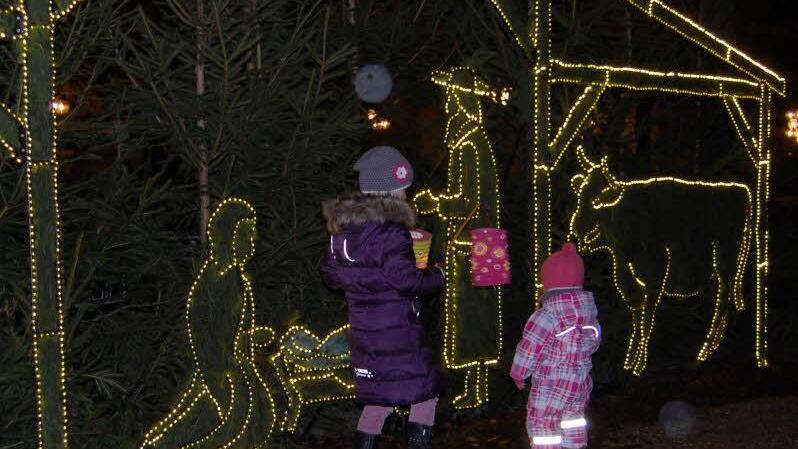und ließen in der Dunkelheit die seit Jahren beliebte Krippenlandschaft mit 60 lebensgroßen Figuren wieder sichtbar werden.