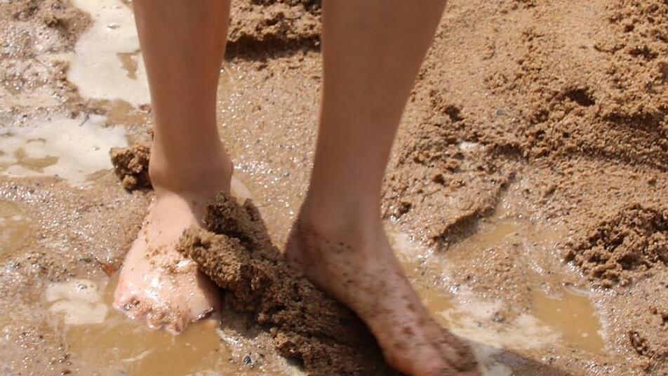 "Hier gibt es schöne alte Bäume und viel Schatten", lobt David das Gelände. Für zusätzliche Abkühlung an dem heißen Tag sorgt das viele Wasser: Die meisten Kinder spielen im oder rund um den knietiefen Teich. Mit einer archimedischen Schraube können die Kinder das Wasser zum Matschplatz heben. An heißen Tagen bleiben also keine Wünsche offen.