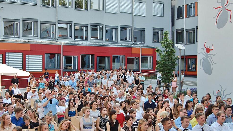 Die 120 Abiturienten des Jack-Steinberger-Gymnasiums trafen sich am Freitag ein letztes Mal im Schulhof zur Übergabe ihres Reifezeugnisses.