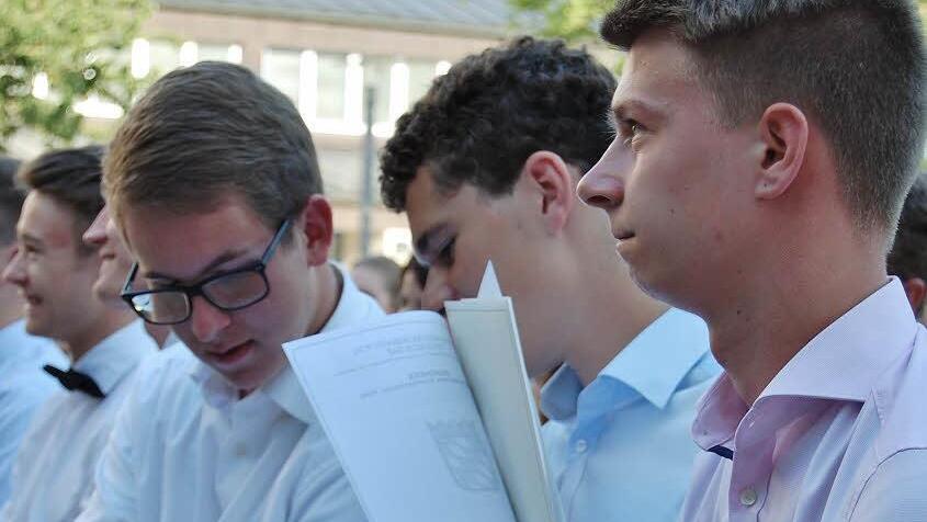 Abitur bedeute in seiner Übersetzung "Weggang" begann Oberstufen-Koordinator Stefan Michel seine Abschiedsrede. Es sei der Schritt in die Selbständigkeit, wandte er sich an seine "Fast-Ex-Schüler", die adrett gekleidet im Beisein von Angehörigen zur letzten Schulstunde ihres Lebens zusammengekommen waren. Mit einer Zeugnisnote könne die persönliche Reife eines Abiturienten allerdings nur teilweise beurteilt werden, gestand der Pädagoge. Viele außerschulische Leistungen hätten zum Reifeprozess beigetragen, die nicht in der Note berücksichtigt seien.