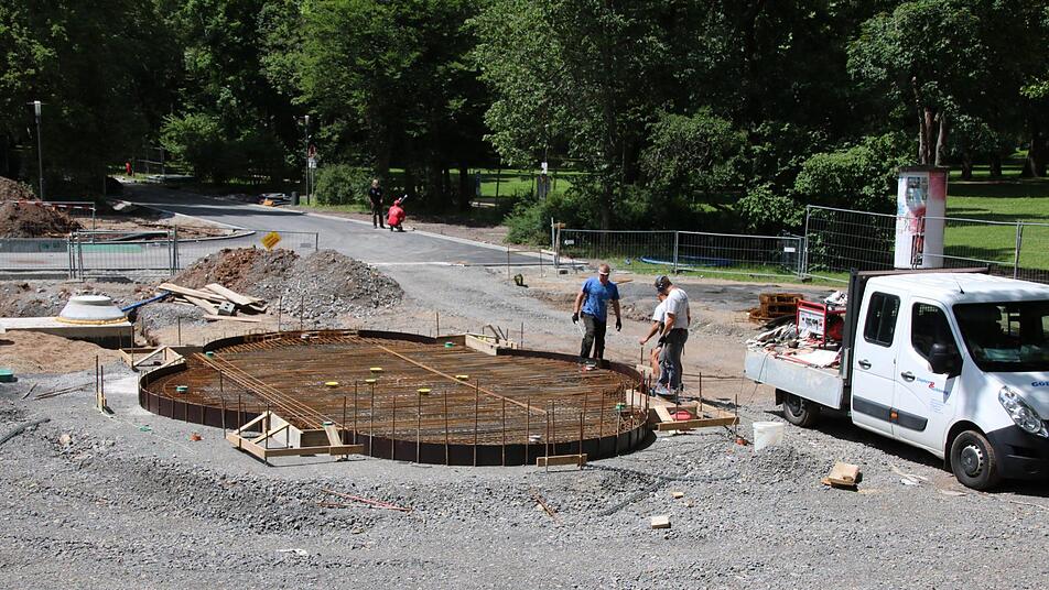 Aber auch Alsheimer kann hinter jede Menge Gewerke bereits einen Haken machen: Estrichleger, Zimmerer, Dachdecker sind längst abgezogen. Fenster und Außenputz sind abgeschlossen. Heute wird die Bodenplatte für den neuen Brunnen vor dem Casino betoniert. Auch wenn sich einige Arbeiten im Außenbereich bis in den Herbst hinziehen, ist sich Alsheimer sicher: "Mitte August können die ersten einziehen."