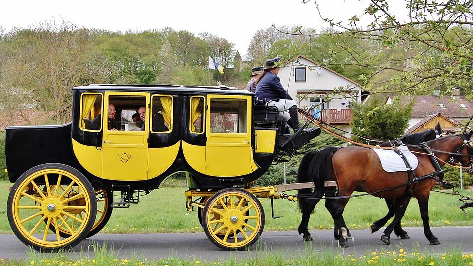 Mit dem Lied "Muss i denn, muss i denn zum Städtele hinaus", gespielt von der Postkapelle Bad Kissingen, haben die Organisatoren die Bad Kissinger Postkutsche in ihre 76. Saison auf die Fahrt nach Bad Bocklet geschickt. Trotz oder gerade wegen des traditionellen Wunsches "Rad- und Deichselbruch" an Kutscherin Yvonne Körner und Postillon Horst Stiller erlebten die Ehrengäste eine sorglose Frühlingsfahrt durch grüne Wiesen, zumal der kirchliche Schutz durch Generalvikar Thomas Keßler gegeben war.