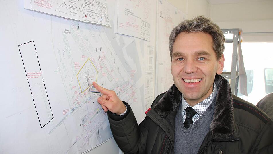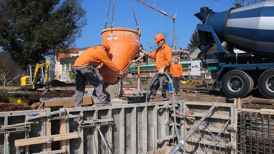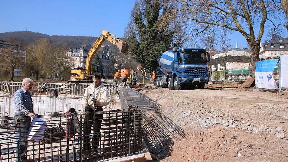 "Wir sind genau im Zeitplan", betont Hornung. Offizieller Beginn der 2,76 Millionen Euro teuren Generalinstandsetzung war erst im Dezember, weil die Stadt lange auf den Förderbescheid warten musste. "Das Hochwasser hat uns etwas zurück geworfen."Die Baugrube für den Brunnen sei mit Verzögerung ausgehoben worden. Mittlerweile sei der Verzug jedoch aufgeholt und die Betonsohle gegossen: 1,50 Meter tief ist das Becken gegründet, aktuell wird der Beckenrand betoniert. Nach dem Einbau der Rohre wird der größte Teil des Beckens mit Beton aufgefüllt, um ein Auftreiben bei Hochwasser zu verhindern. Trotz der tieferen Gründung wird das neue Becken so flach wie das alte.