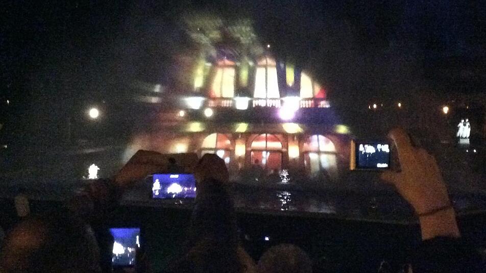 Jeweils mehrere hundert Zuschauer kamen zu den ersten Vorführungen der neuen Brunnen-Show "Raum und Zeit" im Rosengarten. Die bildgewaltige Kombination aus Musik, Text, Tanz, Animation und Fotos aus der Region passt zum Bad Kissinger Slogan "Entdecke die Zeit". Die zwar esoterisch angehauchte, aber trotzdem massentaugliche Show nutzt alle Möglichkeiten des neuen Multimedia-Brunnens, eine echte Attraktion, dessen Preis aber bislang noch nicht feststeht: "In circa sechs Wochen wird die Schlussrechnung vorliegen", sagt Rathaus-Sprecher Thomas Hack auf Nachfrage. Bis dahin verweist die Stadt auf die bisherigen Schätzungen: 3,01 Millionen Euro Baukosten, von denen 1,72 Millionen Euro gefördert werden: "Der Verwendungsnachweis wird bis Juli erstellt", kündigt Hack an.